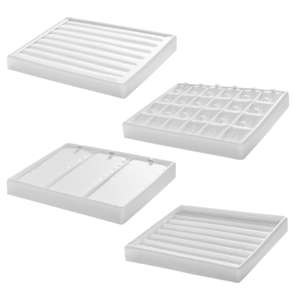 18*25 cm nagyságú fehér műbőrrel bevont tálca többféle kialakítással.